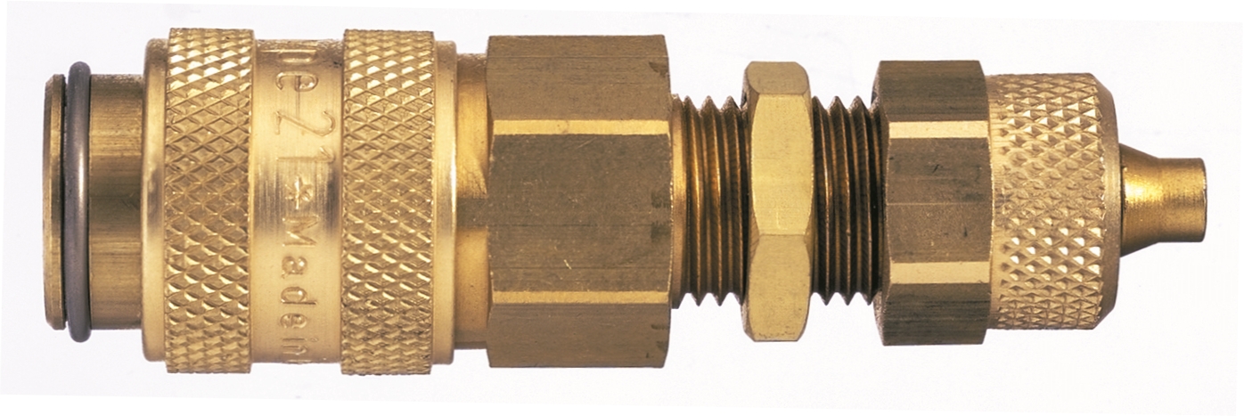 Hochwertige Einhand-Schnellverschlusskupplungen mit kleinsten Baumaßen in Messing MS 58 Robust, sicher und zuverlässig. Kupplungen auf Anfrage auch mit rot oder blau eloxierter Aluminium-Hülse Zahlreiche Einsatzgebiete in der Pneumatik, Mess-, Regel- und Steuerungstechnik Made in Germany